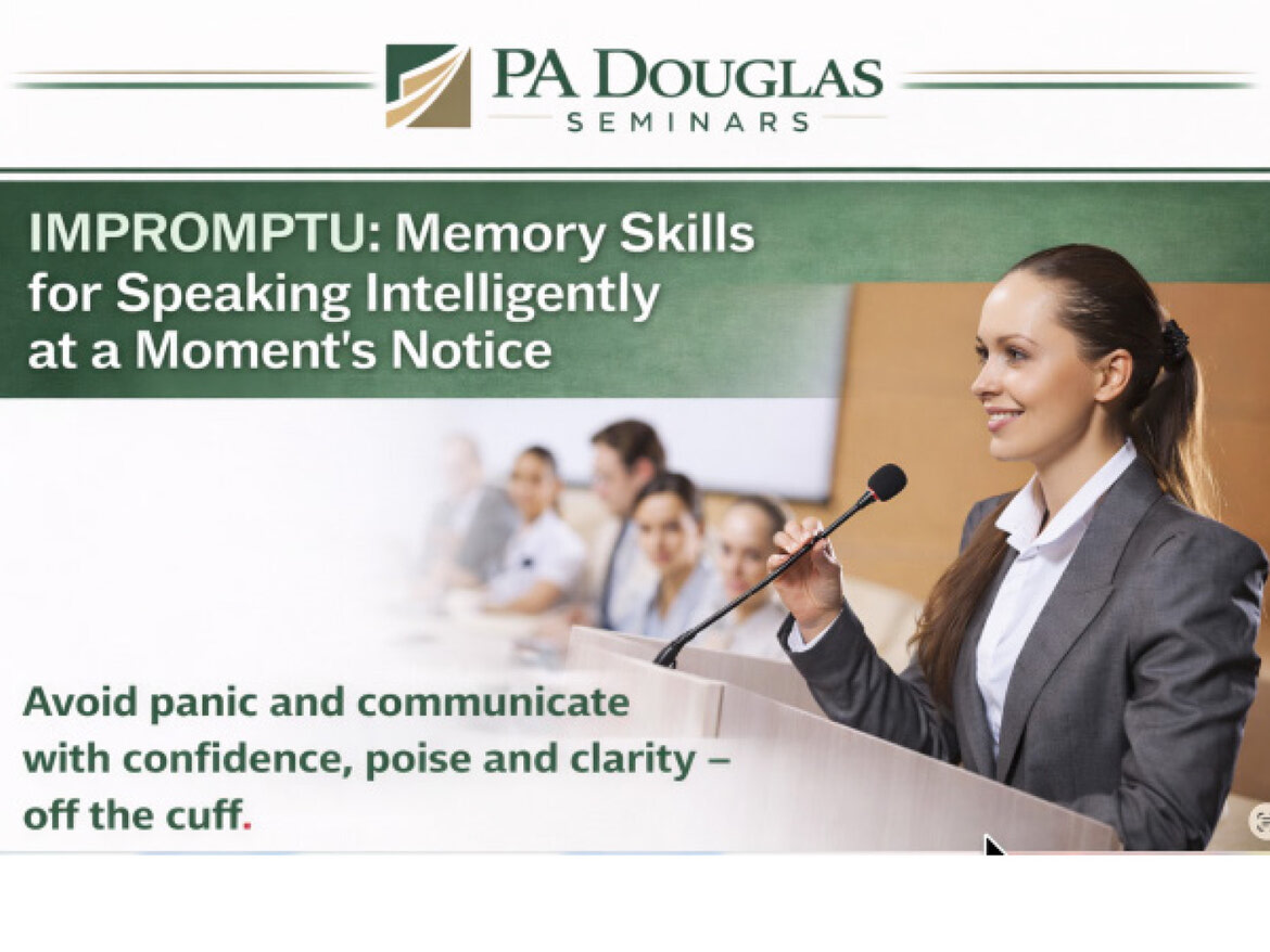 Every manager, executive, professional or public figure can benefit from this powerful five-hour virtual seminar, personally conducted by Dr. Paul Douglas, author of Memory for Management.
